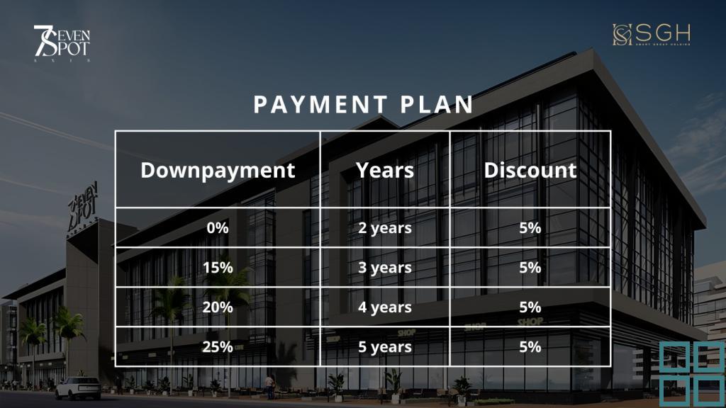 Description: | 7Spot mall Developer: Smart Holding Group (SGH) The mall consists of a ground floor (retail shops) and 3 floors (medical clinics/administrative offices). The best residential area and the only mall in the area. The mall (already built) covers an area of 5,000 square meters. • Down payment starting from 0% and installments up to 5 years. • Engineering Consultant: Mohamed Hafez • Management and Operation Company: A Plus • Delivery date: 12/2026 20 years of experience with multiple mega projects (150 projects) - Attached video and the mall presentation file with some of the prominent projects. -------------------------------------------- Updated on October 21, 2025 Unit Code 32 Medical Clinic, Second Floor, Area 53 m2 Fully finished (reception + bedroom + bathroom)