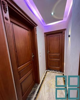 * The apartment door is fully laminated with a wood-like finish, and the laminate is glued with a veneer in the same color as the interior doors.