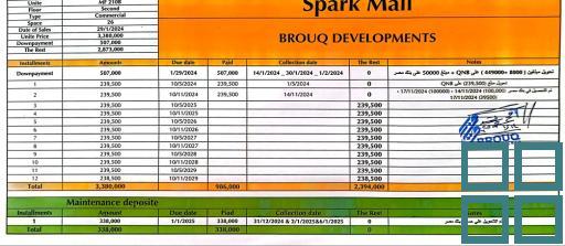 | الوصف التفصيلي للعقار: | اميز واخر محل تجاري للبيع ٢٦ م بالعاصمة الإدارية الجديدة سبارك مول حاليا في أميز موقع يطل على البرج الايقونى الدور الثانى امام السلم الكهربائي والاسانسير (يعنى طالع نازل انت في وشه) المحل تجارى و الدور كله Food & Beverage * * في التقاطع بين كل من محور محمد بن زايد الشمالي ومحو الأمل مع مدخل العاصمة الادارية من ناحية طريق السويس على أكبر ميدان في ال Mu23 بين ال R2 و R3 * سعر مميز مع التقسيط على 6 سنوات. * الاجمالى 3380000 المدفوع 1324000 ألف مطلوب المدفوع + اوفر ٣٧٠٠٠٠ |